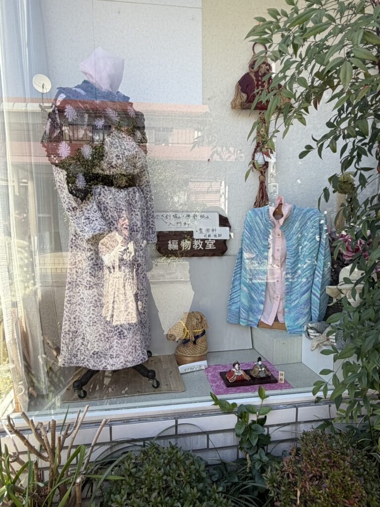教室のウインドウには素敵なお洋服と、お雛様