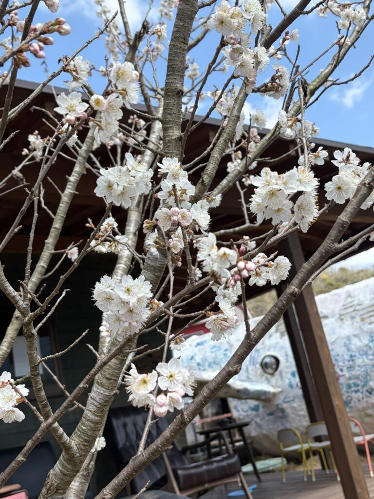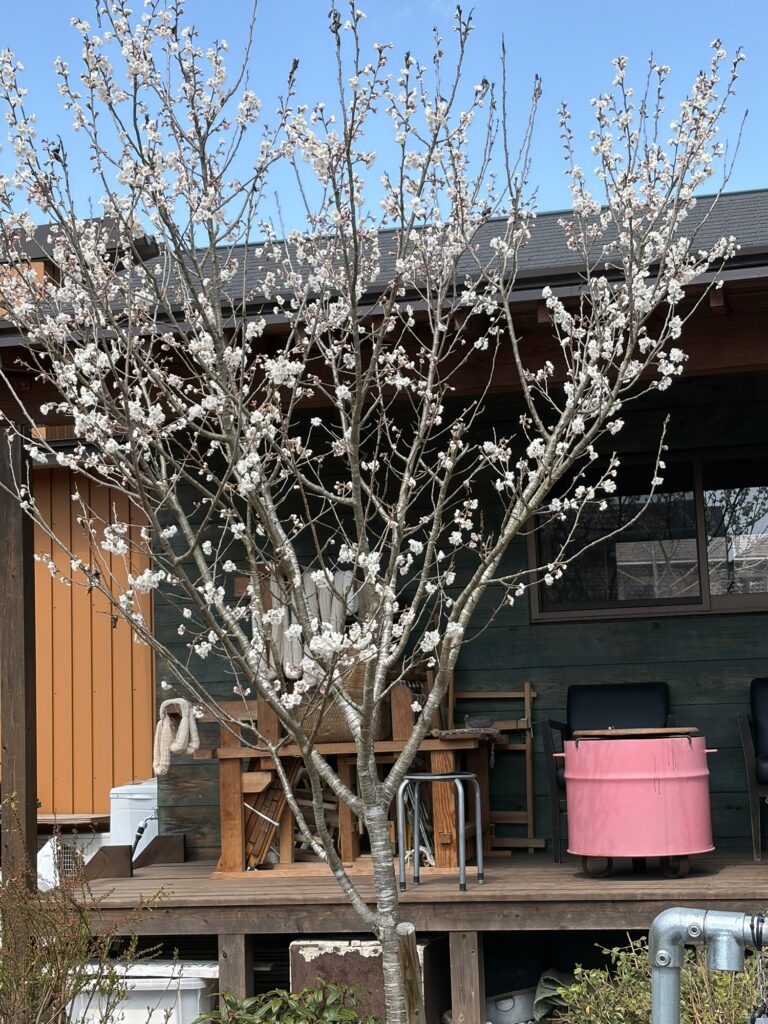 ザッパ村では、今さくらんぼの薄ピンクのお花が咲いてます。