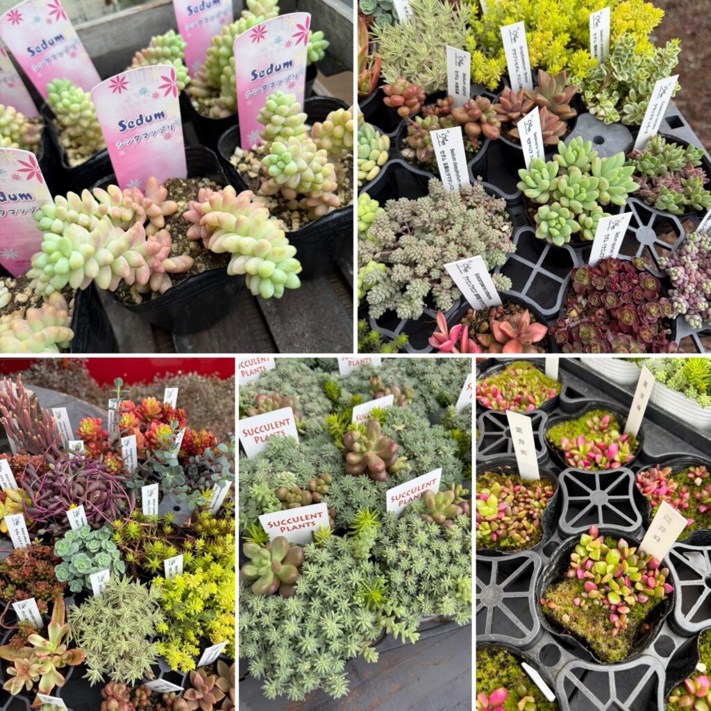 人気で完売していたシンタマツヅリも再入荷。セダムと多肉の寄せ植え、桜吹雪
