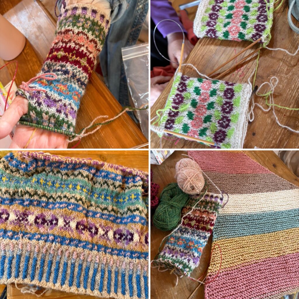フェアアイルのハンドウォーマーや、ベスト、ストールなど皆さんそれぞれ素敵な色合いですね。