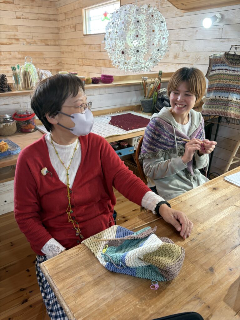 編み編みしながら楽しそうなおしゃべり。