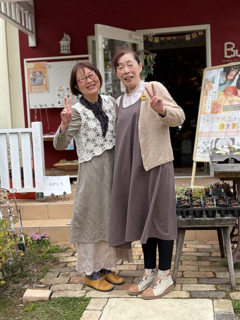 スタッフのふたりは、カーネーションブローチ。母の日フェアでゲットして下さいね